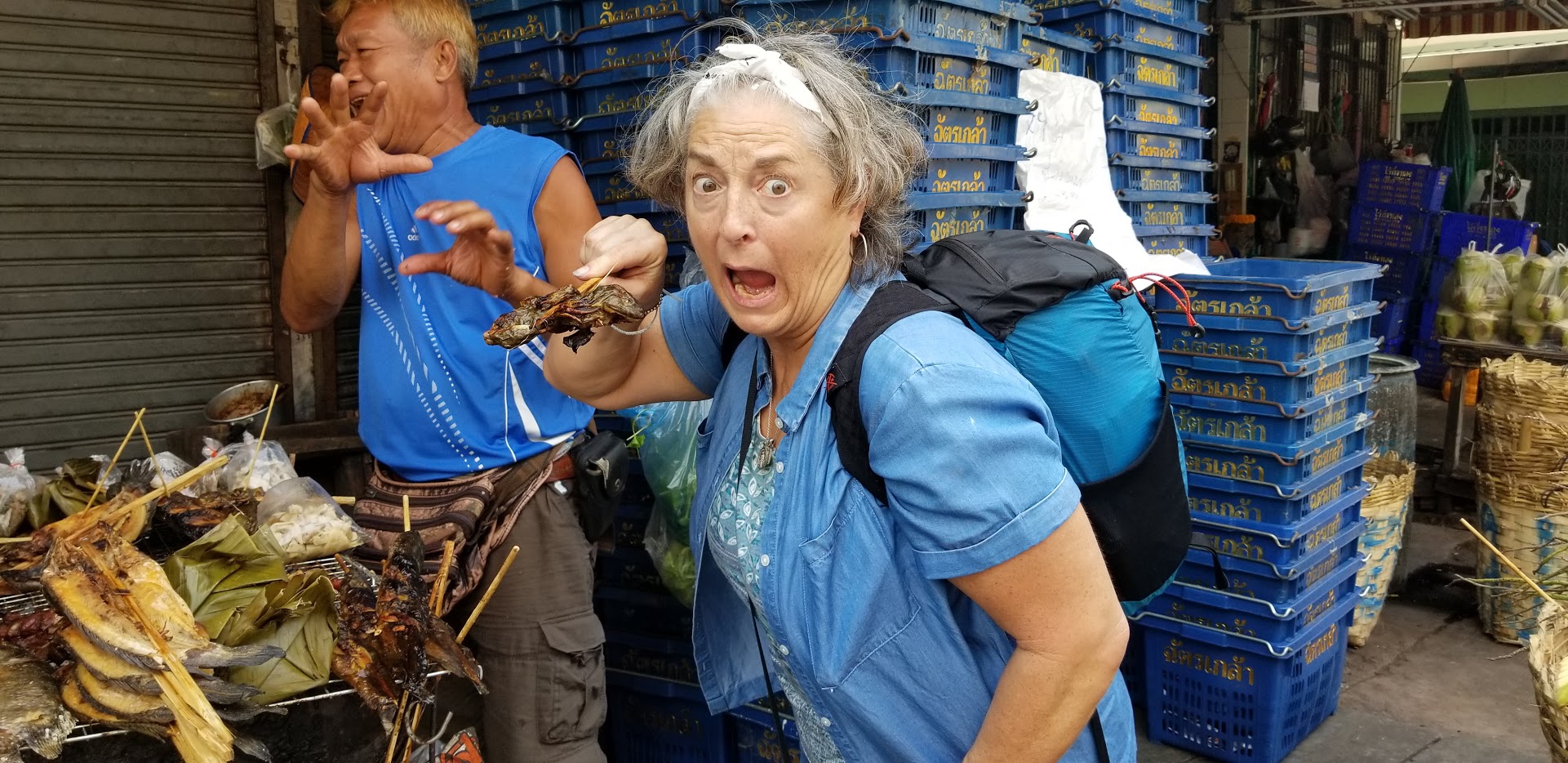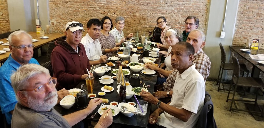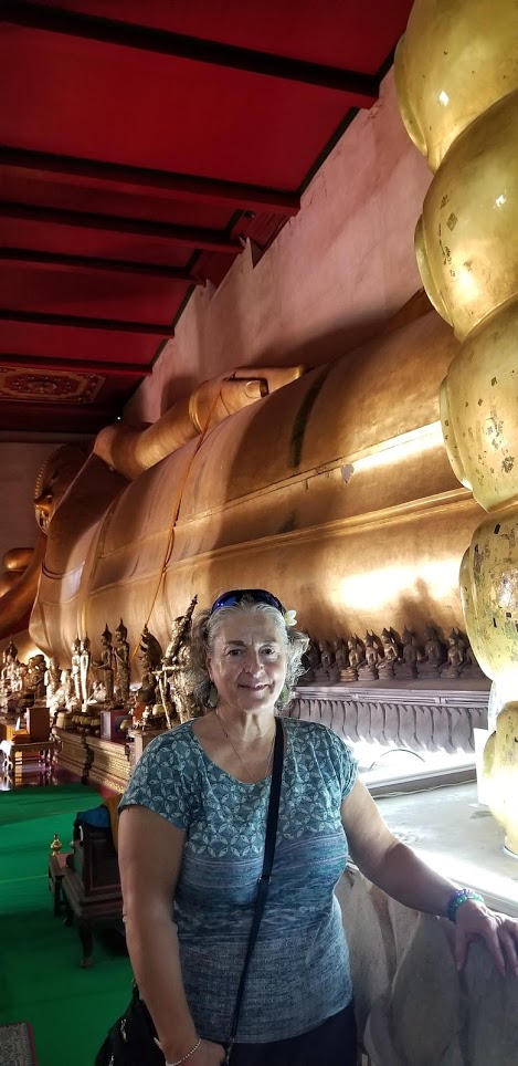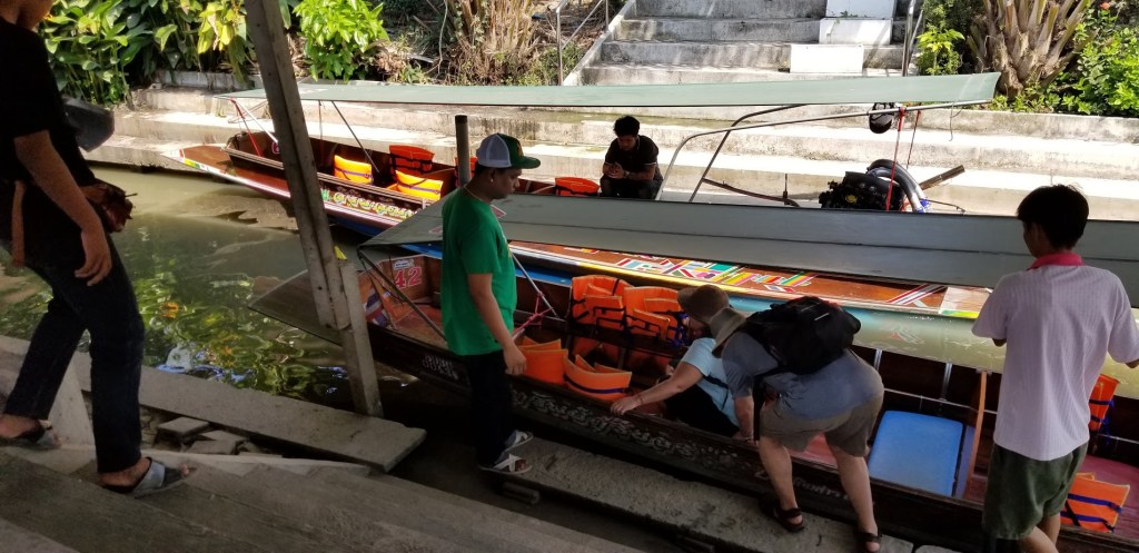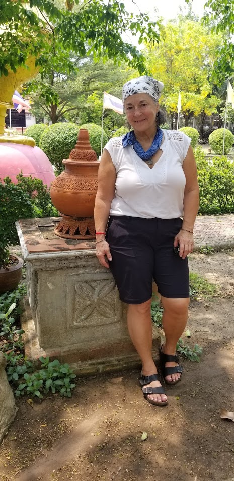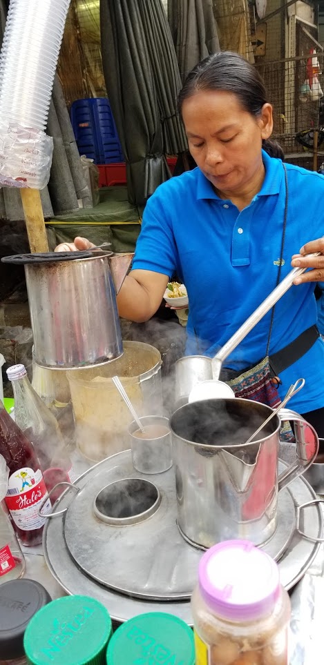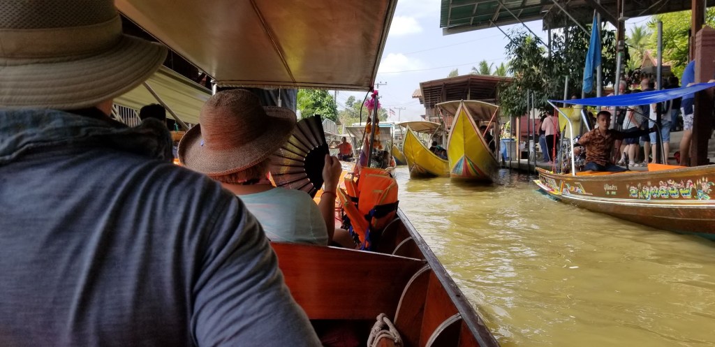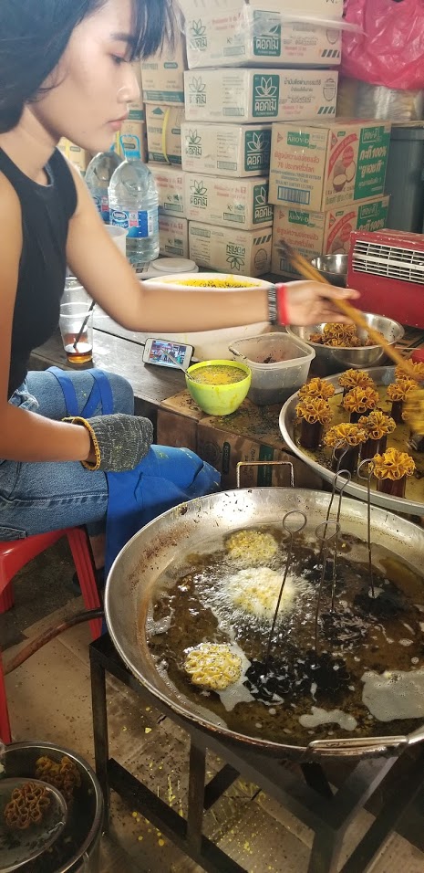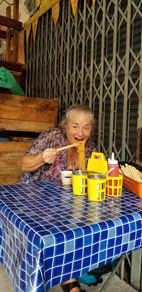 We were invited to one of my students home to help celebrate her husbands 80th birthday. When we arrived, the monks were there chanting over the birthday boy. Before the monks left, one of them provided holy water blessings on our heads, I mean not just a sprinkle like the Catholic Priests but a bunch of bamboo sticks slapped on your head! The food buffet was amazing, I especially liked the pumpkin in coconut milk dessert. At the dinner table were my students’ grown children who speak Thai, their cousins from China who only speak Chinese, and us Americans who only speak English. It made for interesting conversations . . . thank you “google translate”! I had my first tuk tuk ride back to our apartment. Locals don’t typically use tuk tuk’s since they inflate their prices.