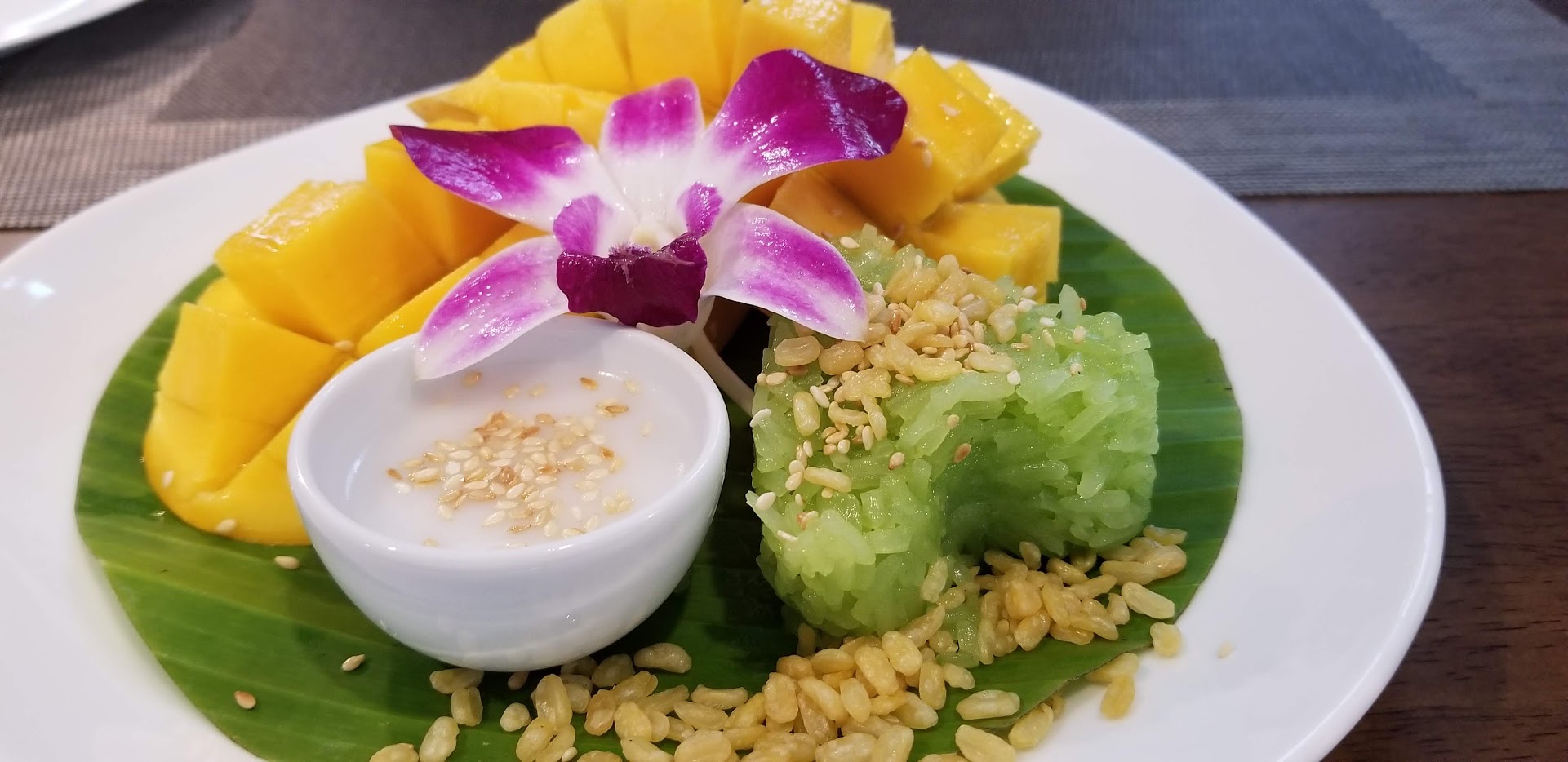 Mango & Sticky Rice with coconut milk and nutty sprinkles