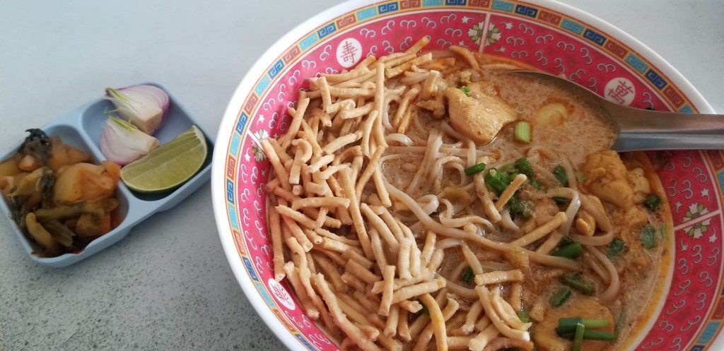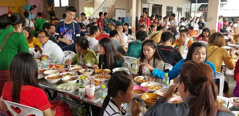 The Mon People are the earliest known inhabitants of lower Burma (now Myanmar). We were invited to attend the 72nd Anniversary of Shan State National Day at Wat Prok. Wat Prok is a Mon Buddhist Temple and one of the three temples where Maryknoll teaches English. Shan State is one of 7 state’s in Myanmar. It is the largest of the 14 provinces by land area. Myanmar consists of 14 provinces; or 7 states representing the areas 7 main ethnic races and 7 divisions. Mon people originally from Shan State who now reside in Thailand travelled from all over to attend the Anniversary celebration. The pride of their heritage was evident as displayed by their colorful cultural dress and array of culinary delights.