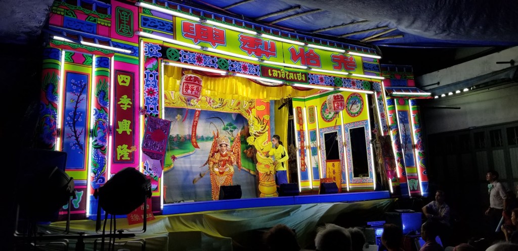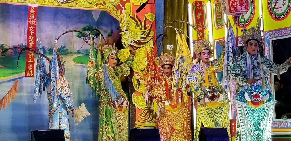 It was so exciting to see the lion and dragon dances as well as acrobatic performances up close and personal! In Chinese culture, the lion symbolizes strength, stability and superiority, while the dragon represents power, boldness and excellence. The dances are performed during festive occasions as a means to chase away evil spirits and welcome in prosperous times. After watching the dances we ventured to the outdoor Chinese Opera. The costumes were so colorful and beautiful but I did not understand a thing about the opera! Bro. John led us backstage and we were able to see the performers up close.