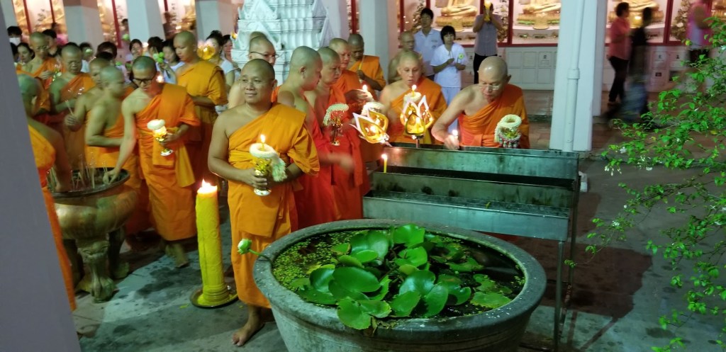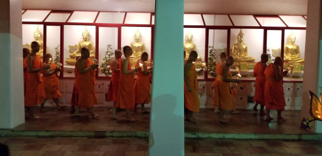 We participated in the end of the Chinese New Year celebrations as well as Magha Puja (Prayer Day) which both fall on the full moon day of the third lunar month. Of the 70 million population of Thailand polled in 2017, the Chinese community represents about 14% or 10 million people. Thailand is home to the largest overseas Chinese population. The religious affiliation in Thailand is Buddhist 54 million or 87%, Muslim 7.5 million or 12% and Christians are less than a million or .72%. Magha Puja is the 2nd most important Buddhist festival which commemorates a gathering that was held between the Buddha and 1,250 of his first disciples. On this day, Buddhists celebrate the creation of an ideal and exemplary community made up of Monks, Nuns, Laymen and Laywomen. Some authors have also referred to the day as the Buddhist “All Saints Day”.