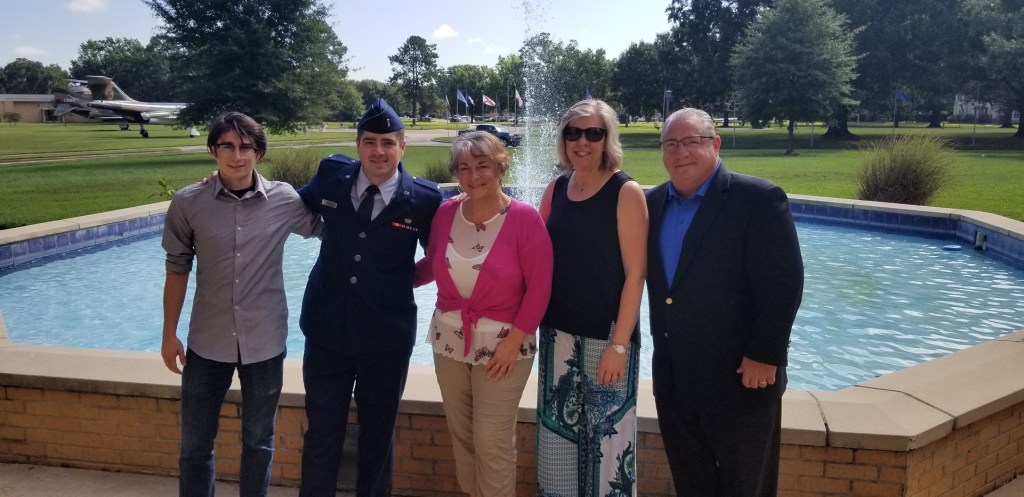 JAG Pinning ceremony September 2018 – Montgomery, AL My sons Eric & Marcus, me, Terri & Mike (My brother & his wife & Marcus’ Godparents)