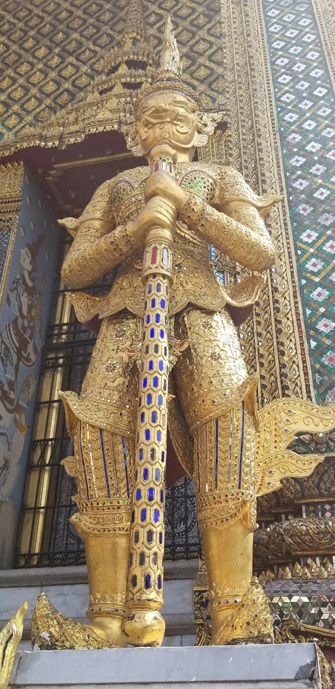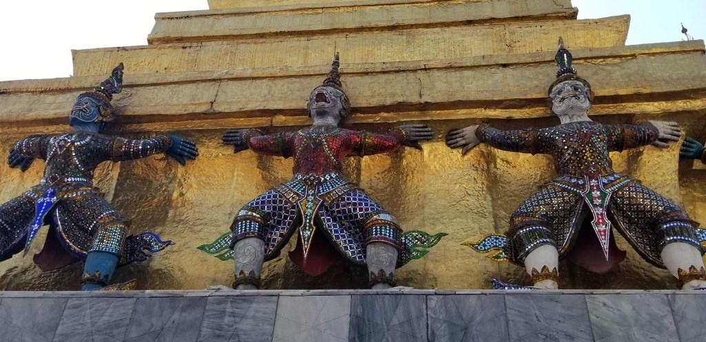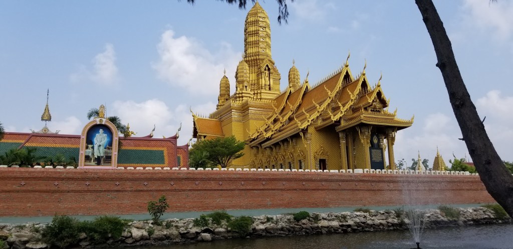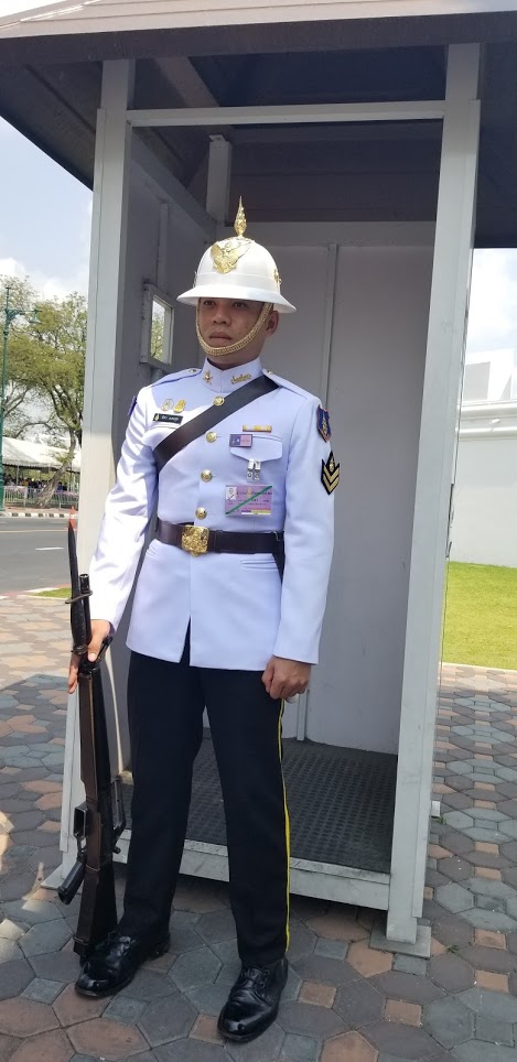 The Grand Palace was the former royal residence. Although the royal family no longer live there, Thailand is a kingdom, and a kingdom would be incomplete without a gorgeous palace complete with austere guards standing at the palace entrance. The late King Bhumibol Adulyadej of Thailand died in October 2016, but two years later, preparations are beginning for the coronation ceremony of his son, His Majesty King Maha Vajiralongkorn. The ceremony is scheduled May 4 – May 6, 2019 in Bangkok. Pictures of the late King and and King-to-be are not only on the Thai Baht currency, but huge framed enlargements of the royalty can be seen everywhere around Bangkok.