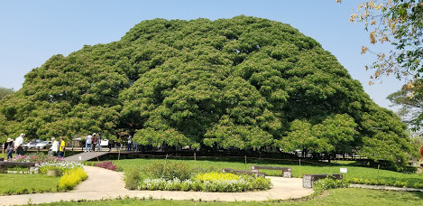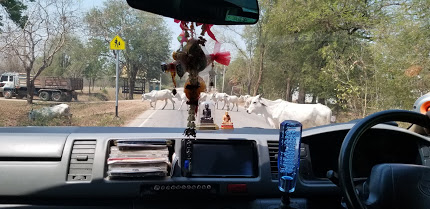 We did not go to the waterfalls since we were told that they would be dried up at this time of year. Alternately, we went to see another masterpiece of nature, a giant Monkey Pod tree. The pictures don’t do justice to show the size of this massive specimen of a chamchuri (rain tree) that is over 100 years old. On the way out of the park we ran in to some unexpected traffic on the road . . .