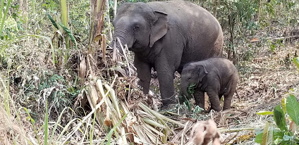 Next, we hiked in to the jungle to view a Mama and baby elephant. Fern said that many babies die when left in the jungle because they are so curious and playful with not such nice friends like poisonous snakes and other dangerous wild animals.