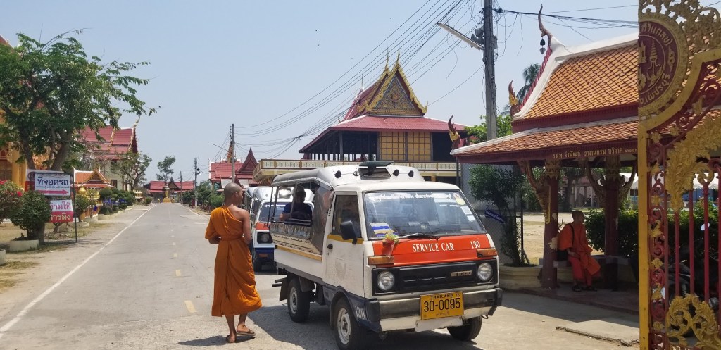 It’s so hard to believe that this is my last week to teach English in Thailand! I have learned as much from my students as hopefully I have taught them. In general, the Thai people are the most generous and kind hearted people I have met as a culture. Just this morning on my songtaew ride to the temple, an elderly lady was getting on the truck and others were quick to extend their hand to help her on-board. The younger generation is very respectful to elders and will readily give up their seat on a crowded songtaew or bus or other modes of transportation. My gray hair has even given me a seat at times . . . I’ll take it! I am already thinking about missing this place 😦