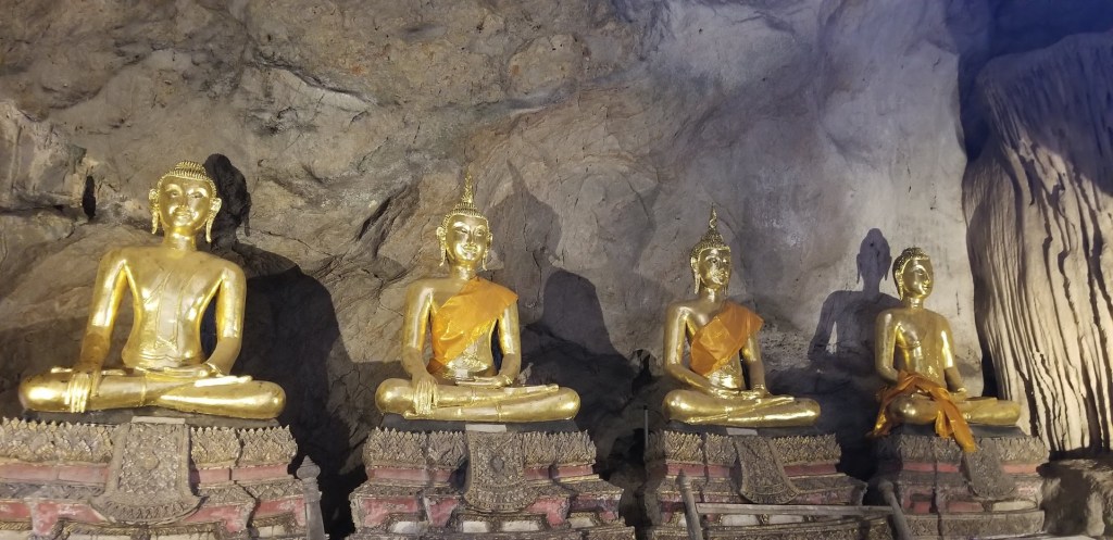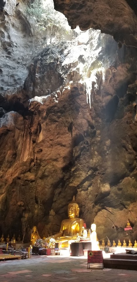 We loaded in to several songtaews that would drive us up the windy narrow roads to the cave entrance. Major restorations were made to the cave during King Rama IV’s reign and it is said that he used the cave to study Buddhism and to meditate. We walked down stairs about 100 meters in to a cool and serene atmosphere filled with caverns and beautifully illuminated golden Buddha images. The stalactites hanging from the ceiling were amazing.