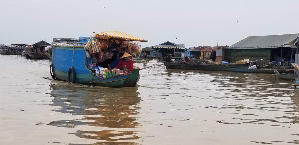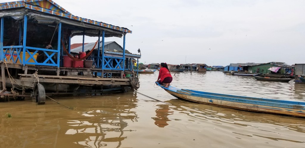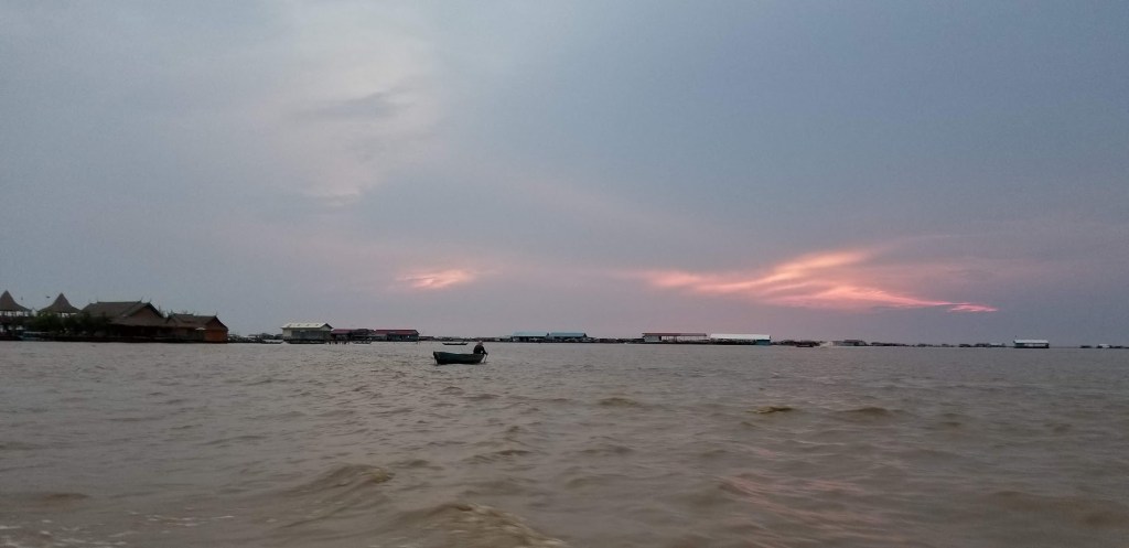 Once Don and Tanya arrived in Siem Reap, the five of us hired a guide to take us to Tonle Sap Lake where we visited a floating village. There are more than 170 floating villages on Tonle Sap with the majority of the 80,000 inhabitants considered non-immigrant foreigners. Made up of three ethnic groups of Vietnamese, Khmer and Cham, they are a people without a country. Vietnamese who endured the brutality of the Khmer Rouge regime in Cambodia faced execution or deportation to Vietnam. Those who stayed were stripped of all identity, property and papers and could not reclaim or buy land so their solution then and for generations today, is to live in wooden homes floating on bamboo rafts and barrels. Our guide, Kim, was about 5 or 6 years old during the Khmer Rouge rule. As the sun was setting on the lake, and the boat engine turned off, he shared some heart felt memories from this devastating genocide.