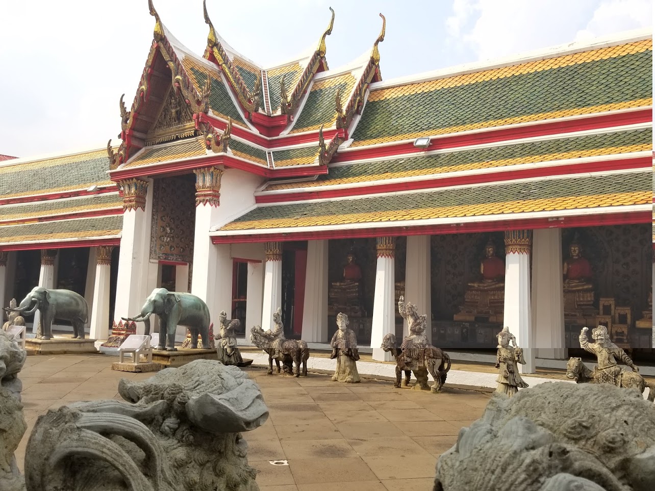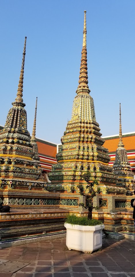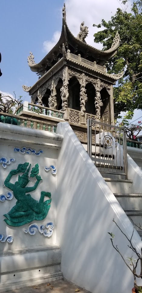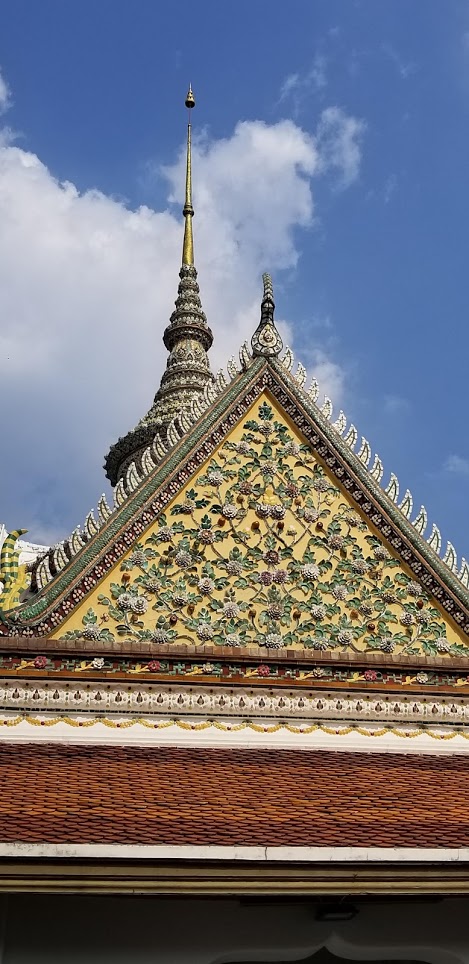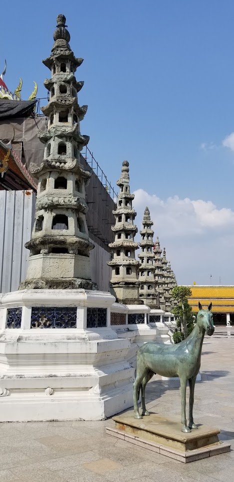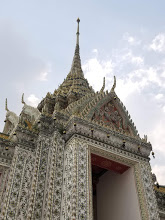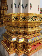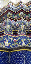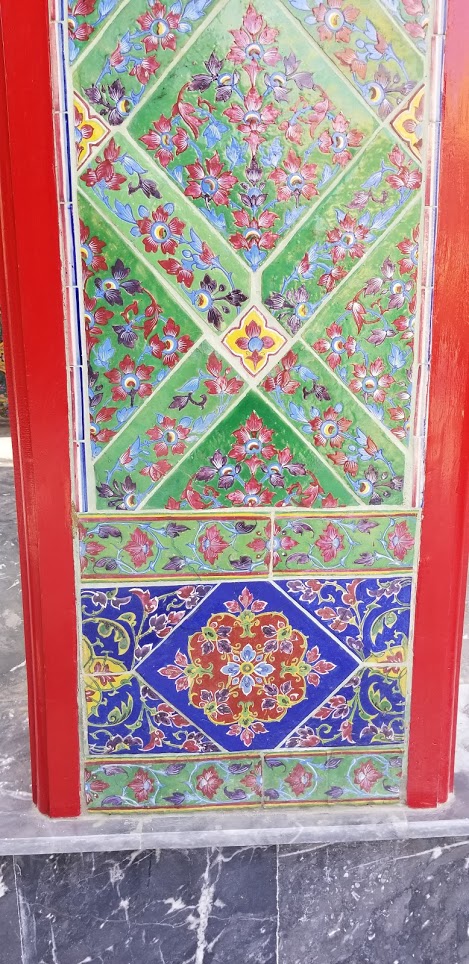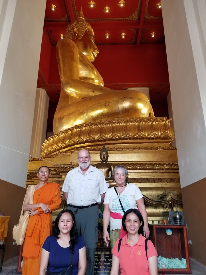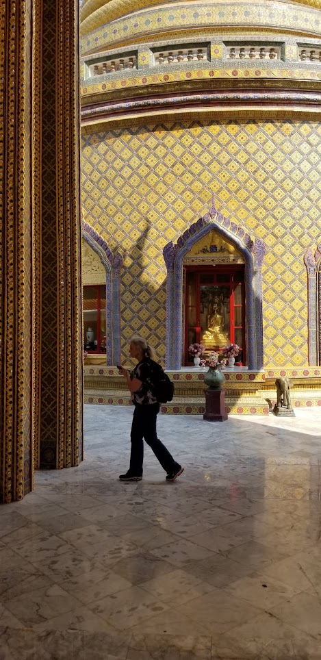 Bro. John took us on a tour of Wat Suthat which is one of Bankok’s oldest and most important temples. The ashes of King Rama VIII are enshrined in monuments there. And, although the 8 meter high Buddha image was covered and under repair, I was mesmerized by the color and design of the tile work inside the Wat.