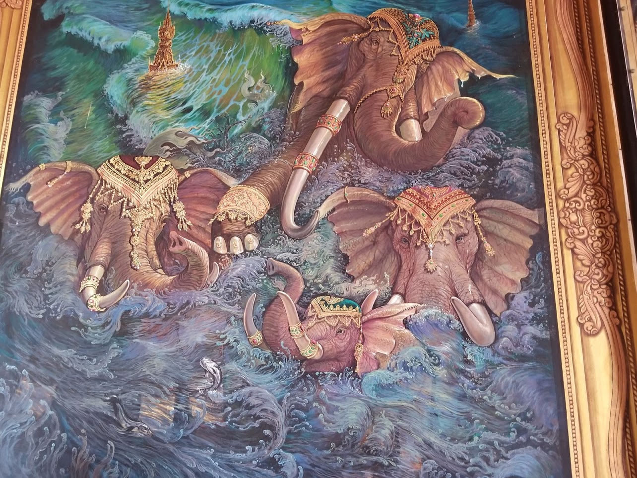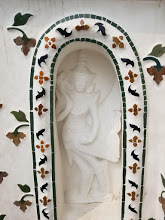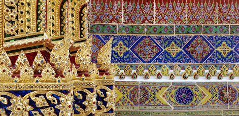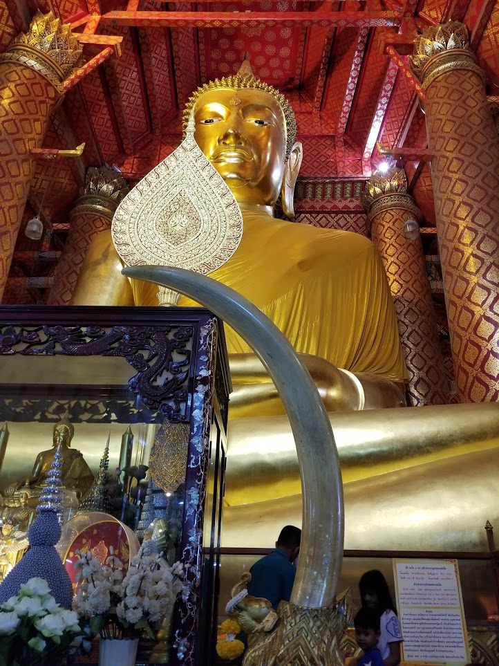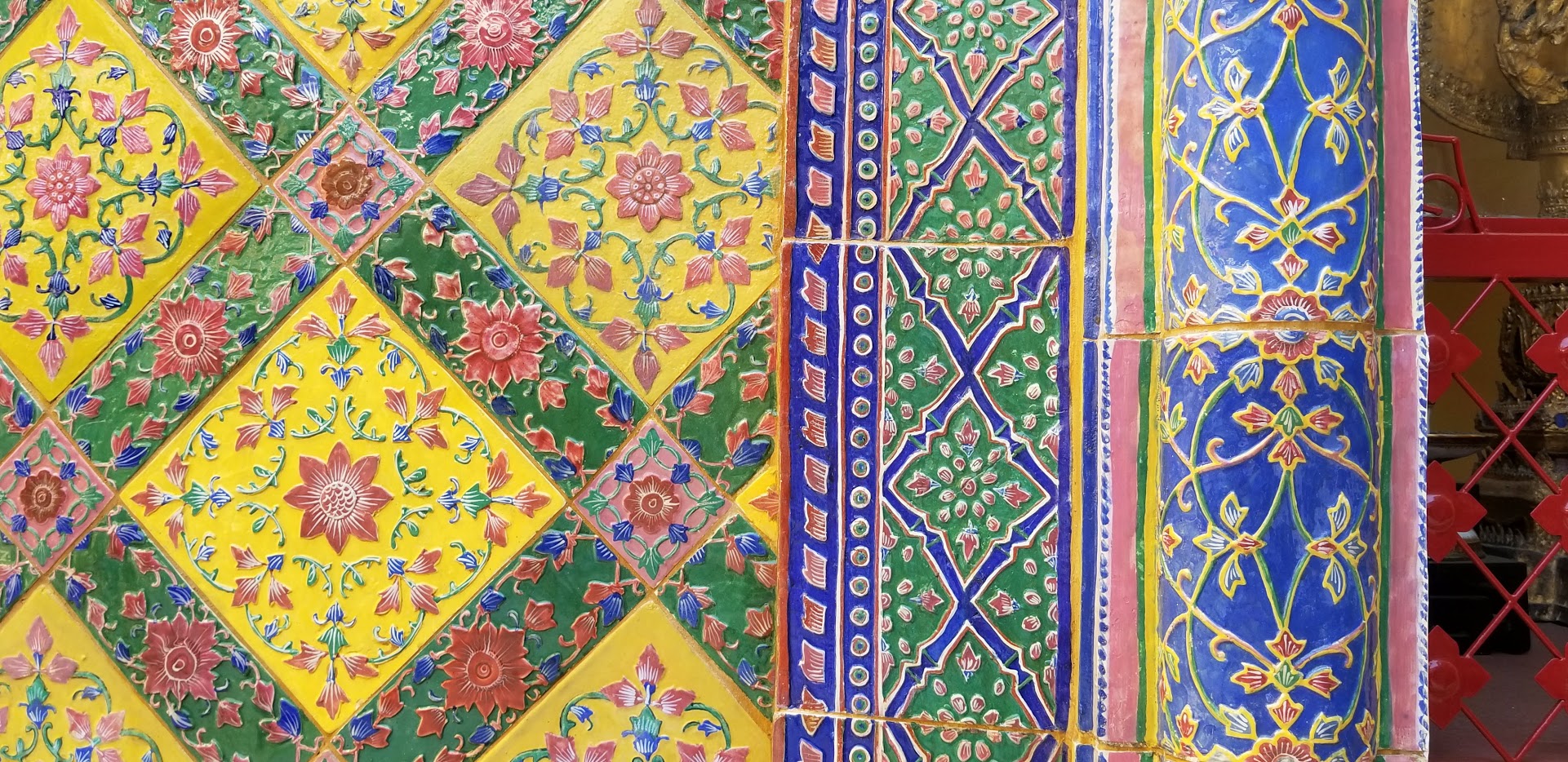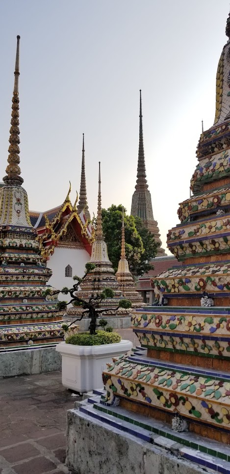 Bro. John took us on a tour of Wat Suthat which is one of Bankok’s oldest and most important temples. The ashes of King Rama VIII are enshrined in monuments there. And, although the 8 meter high Buddha image was covered and under repair, I was mesmerized by the color and design of the tile work inside the Wat.
