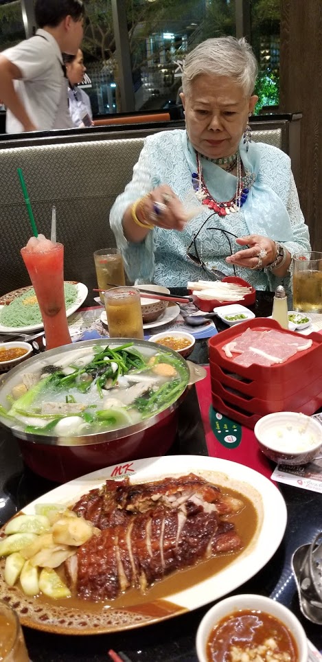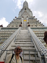 Ajahn (Head Teacher/Professor Monk) Suraphet took fellow Maryknollers and some students from the school to Wat Pho and Wat Arun. In addition to the impressive Reclining Buddha, Wat Pho is well-known as a center for traditional massage and medicine. I’ve had two traditional Thai massages now and enjoyed them both. It’s quite different to most other forms of therapeutic massage and tends to be invigorating rather than relaxing, incorporating yoga style postures to relieve stress and improve blood circulation. After the tour, Pak, who is a beautiful 79 year old lady in my class, treated all of the Maryknollers and other students to an amazing dinner at a Japanese restaurant. She ordered a wonderful soup where the broth boils in the middle of the table and you add the raw meats, fish, egg, vegetables to cook. It was quite the experience and I think she ordered everything to put in the soup but the kitchen sink!