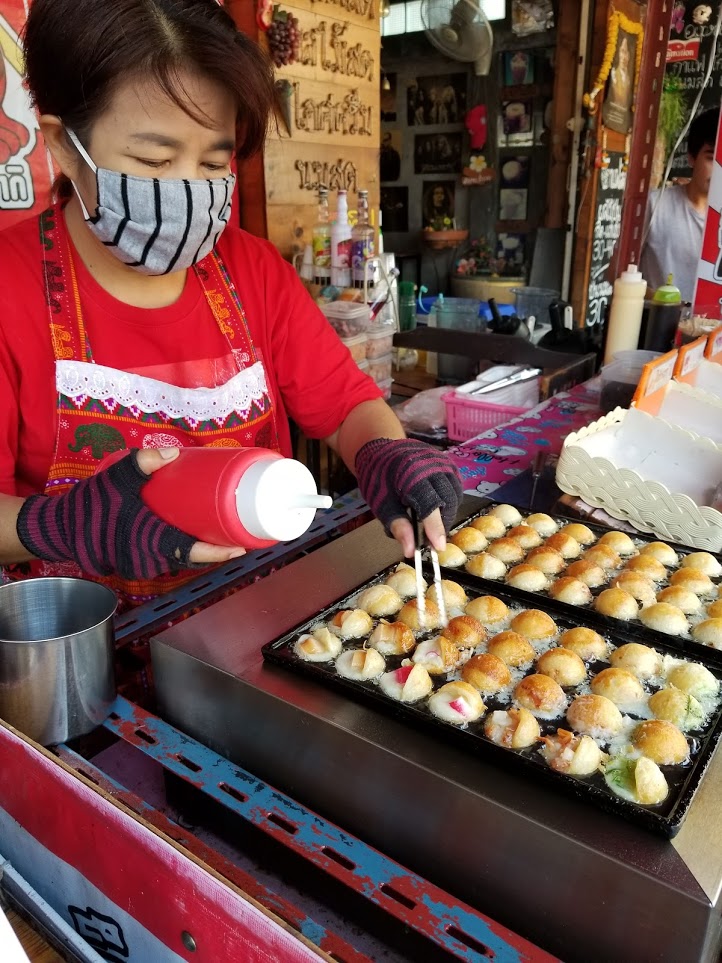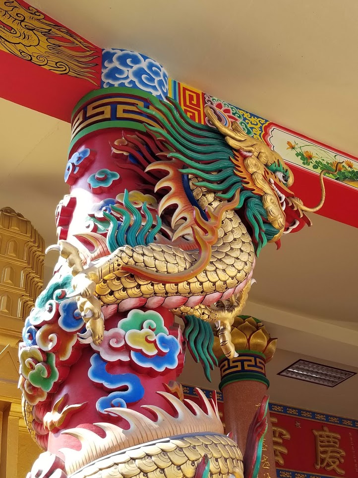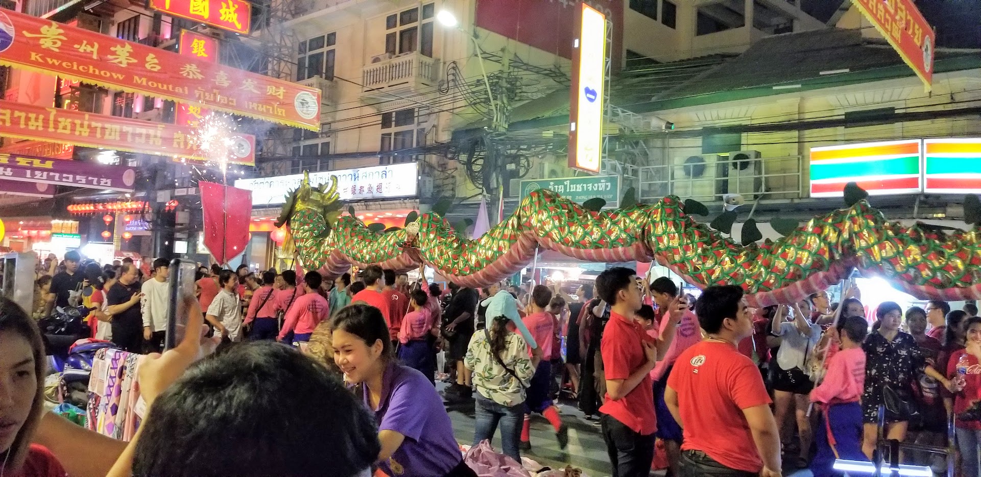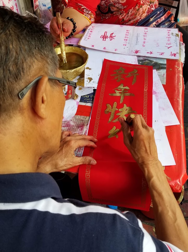 Bangkok’s Chinatown is one of the largest China towns in the world. I celebrated the Chinese New Year (February 5th) with friends who were visiting from the US. Earlier in the day, we took the express boat to tour the Flower Market. It reminded me of the wholesale produce house my grampa started in Portland. Later in the day, we walked to China town. As we were sipping tea in an upscale tea room on the main street through Chinatown, we witnessed the police clear the motor traffic and the party began! As the sun was setting, the streets filled with mass people dressed in Chinese costumes and a sea of red. Tons of food vendors set up their wood barbecues, woks and deep fryers as families gathered to celebrate the New Year. Excitement was in the air along with Lion and Dragon dancers! We even saw the Princess and Prime Minister go by in their coach – what an honor.