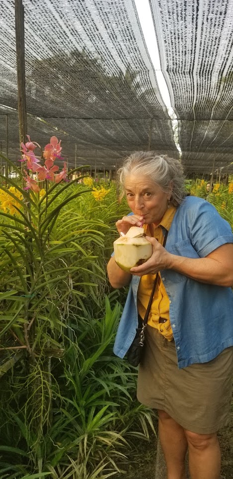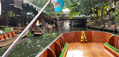 I was introduced to Dr. Nik & Dr. Aim via email by an acquaintance who lives in my apartment building in Portland. We got together last Saturday and they were amazing hosts as I’ve experienced from all of the wonderful people I’ve met in Bangkok. They took me to see a floating market where we went on a boat ride on the canal and stopped at an orchid farm. Afterwards, they took me to an upscale mall for a tour of the ‘everything Japanese’ floor and wonderful Thai dinner. Did you know that Bangkok has been carved, drained, protected and irrigated by hundreds of canals since the 18th century? Although Bangkok’s usual icons are tuk-tuks and traffic, its waterways are the true symbols of a city that was known as the “Venice of the East” during much of the 19th century. Many of the canals have concrete barricades now to prevent boats and fishermen from using them.